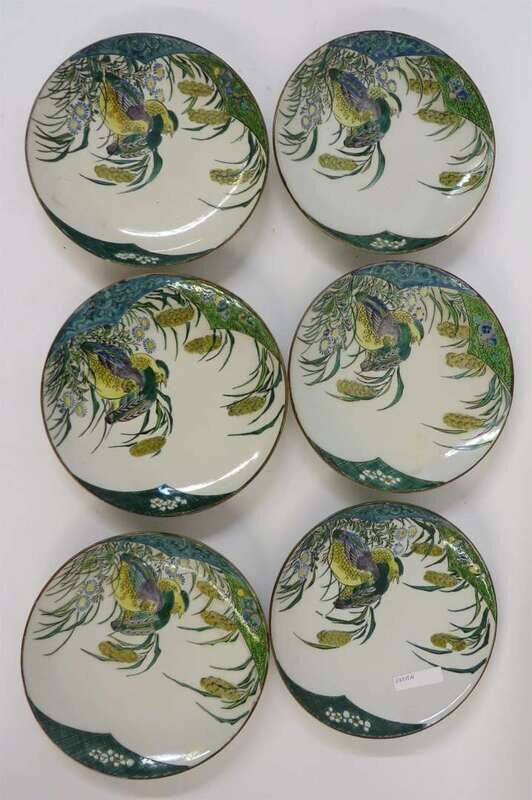 A set of six Japanese kutani 'mandarin duck' plates 19th century