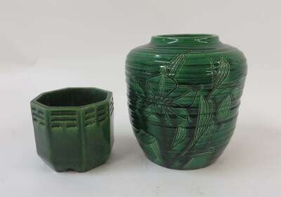 A Japanese green glazed hirado earthenware jar with a smaller Japanese green glazed stoneware censer edo period