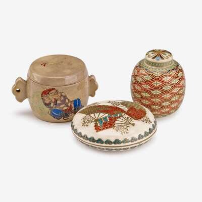 Three small Japanese satsuma enameled earthenware covered jars meiji period
