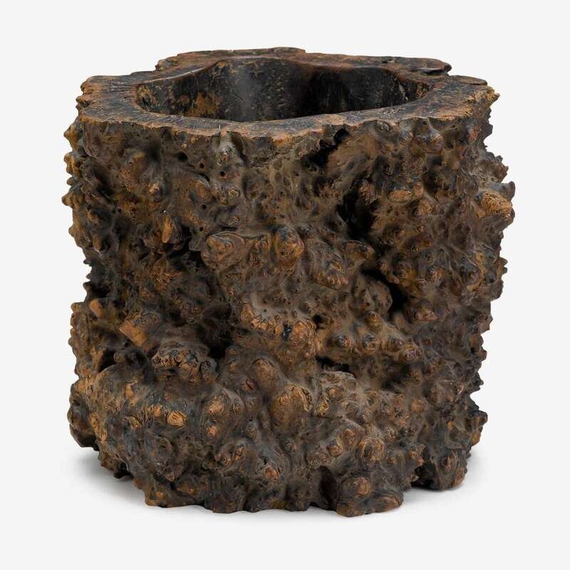 A Chinese root form burlwood brush pot without base plug qing dynasty