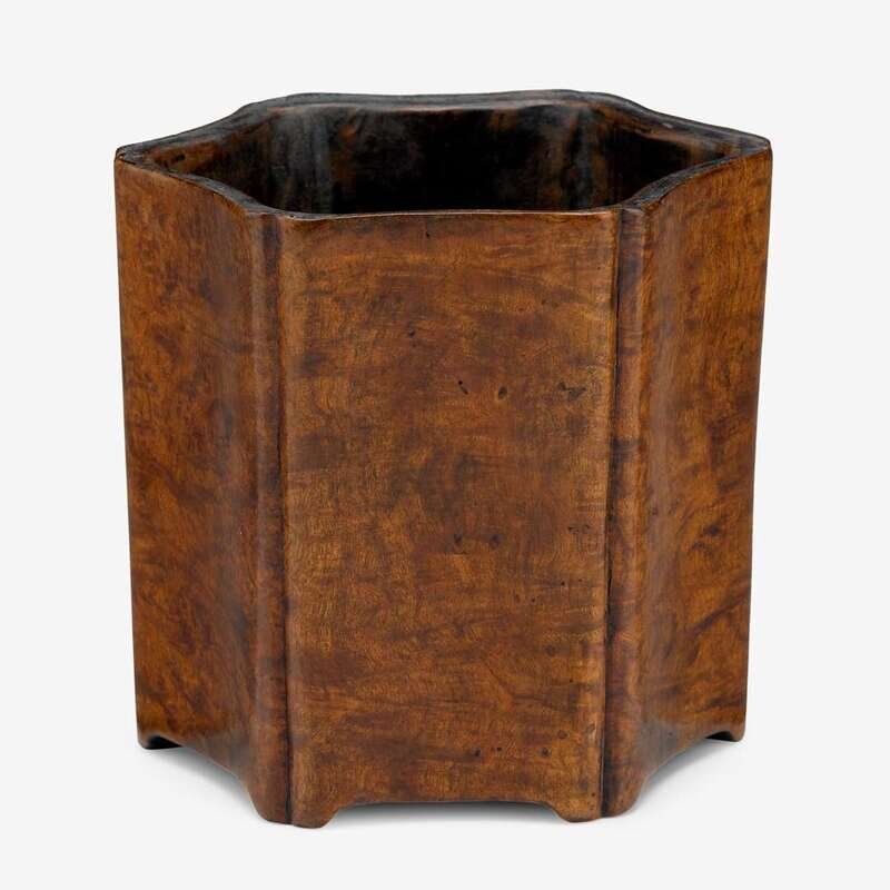 A Chinese hexagonal burlwood brush pot qing dynasty