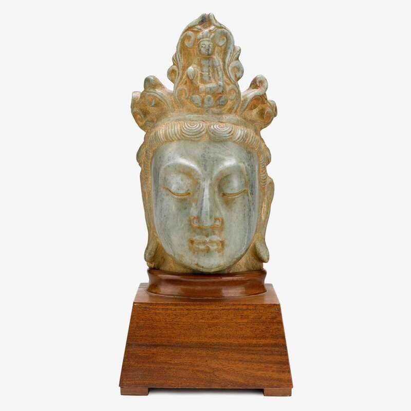 A Chinese celadon grey marble head of Guanyin possibly tang dynasty
