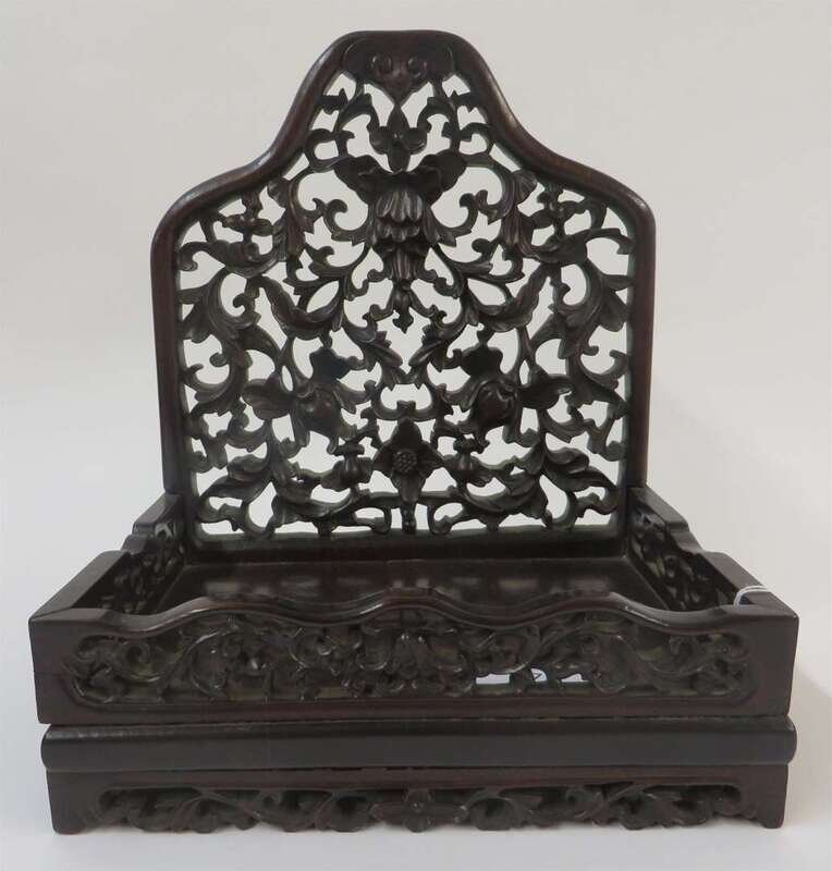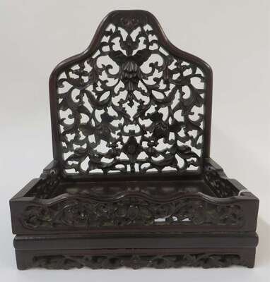 A carved and reticulated Chinese hongmu stand with lotus decorations 19th / 20th century