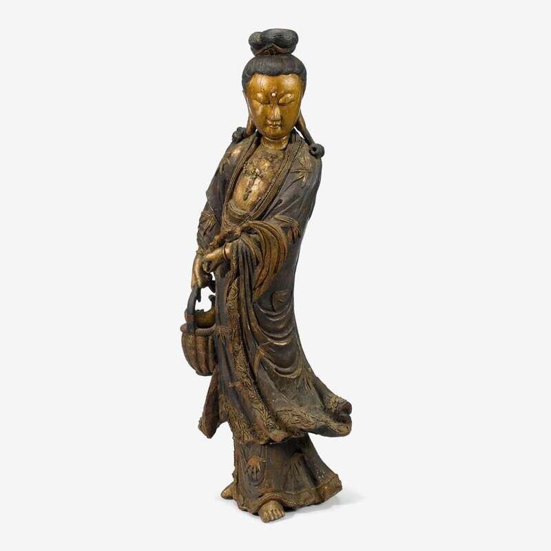 A Chinese gilt lacquered and gesso applied wood Guanyin qing dynasty