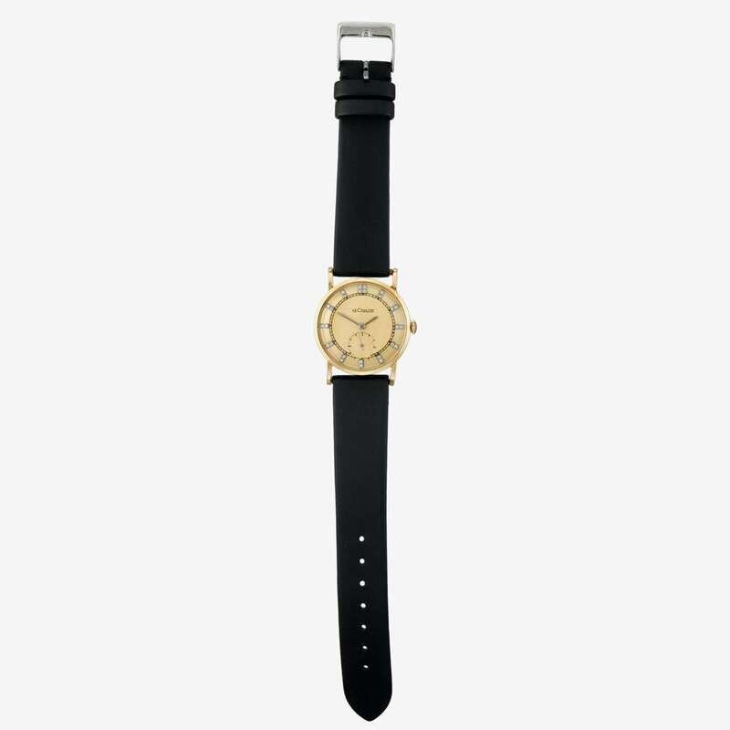 17 jewel movement no.756087, gold tone dial with single-cut diamond numerals and sunk subsidiary seconds dial, case no. 58759. Bracelet not pictured.