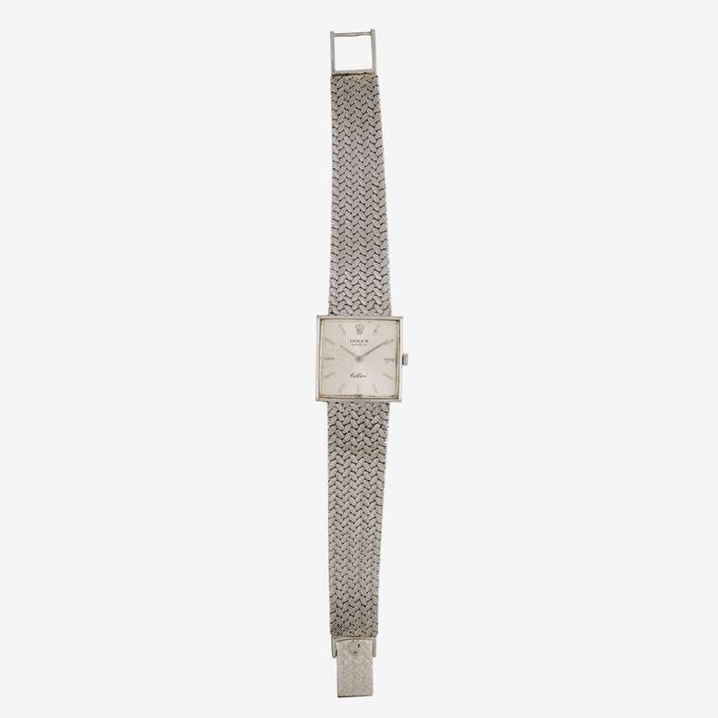19 jewel movement calibre 1600, ref. 3659, case no. 610 attached to original Rolex mesh link bracelet with foldover clasp. Case, dial, movement and clasp signed for Rolex.
