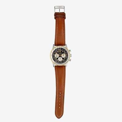 A gent's stainless steel and gold plated chronograph strap watch with date, Breitling navitimer