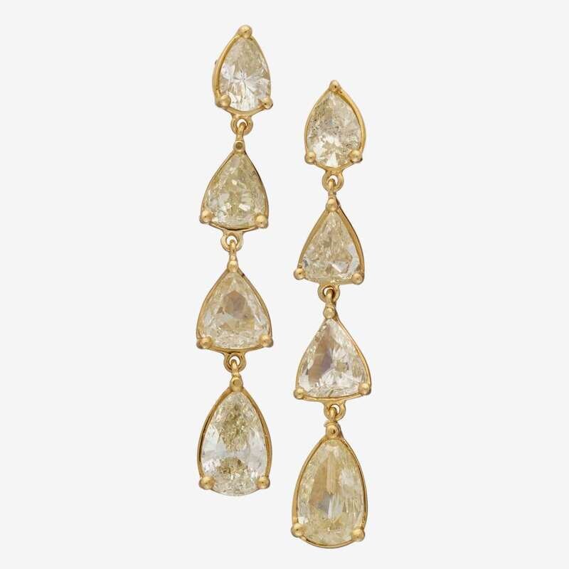 each set with four graduating pear-shaped diamonds weighing: 0.91, 0.90, 0.53, 0.52, 1.00, 0.79, 0.55, 0.51 carats respectively.