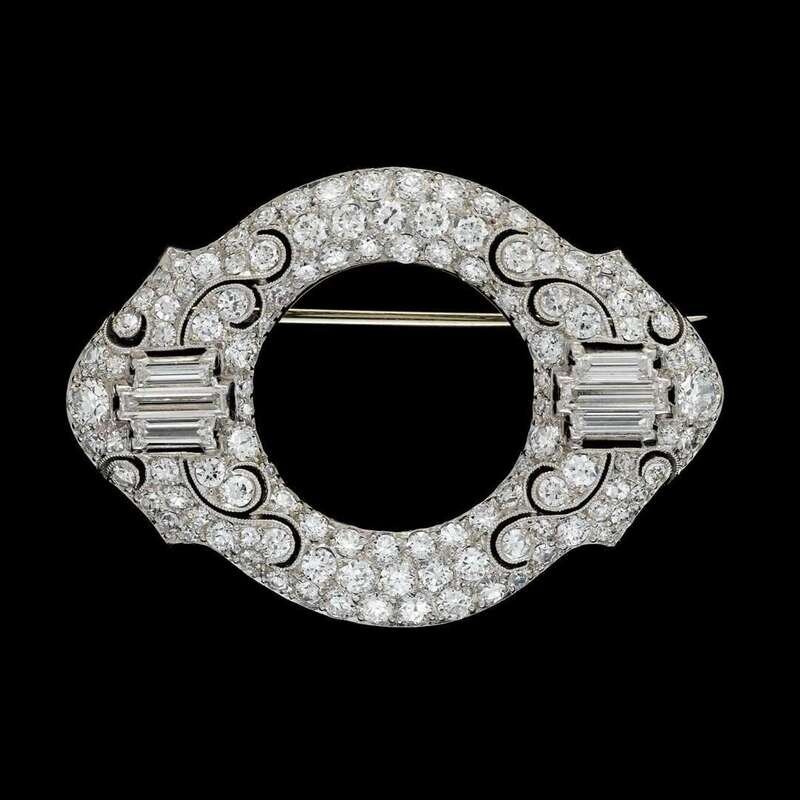 pavé-set diamonds accented by baguette-cut diamonds with scrolling pierced millegrain detail; total diamond weight approximately: 3.50 carats; signed J.E. C & Co. and numbered L 320 (both obscured).