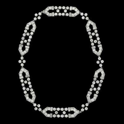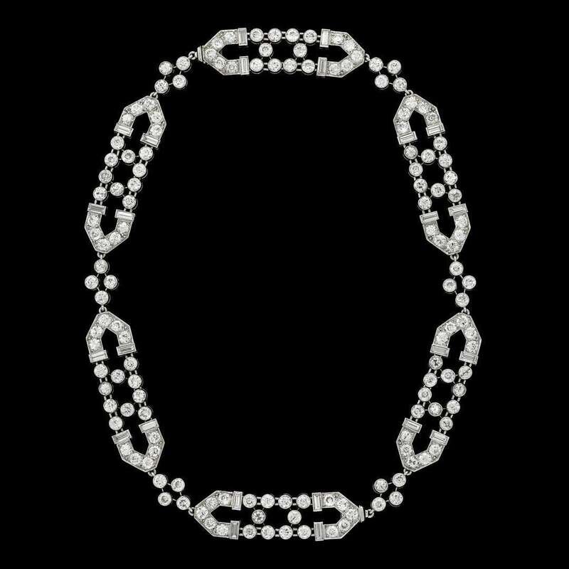 flexible links set with round and baguette-cut diamonds; total diamond weight approximately: 15.00 carats; with French assay marks; can be worn as two bracelets.