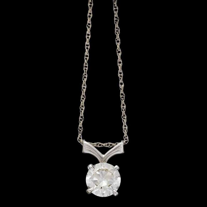 set with a round brilliant-cut diamond weighing approximately: 1.75 carats.