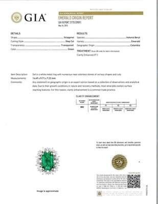 A Colombian emerald, diamond and eighteen karat white gold ring