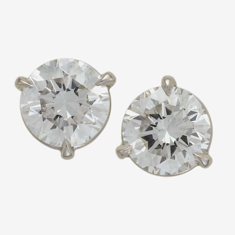 each set with a round brilliant-cut diamond weighing approximately: 1.00 carat respectively.
