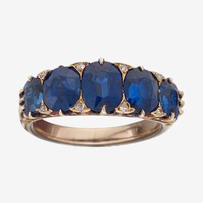 set with five graduated oval-cut sapphires; total sapphire weight approximately: 4.30 carats.