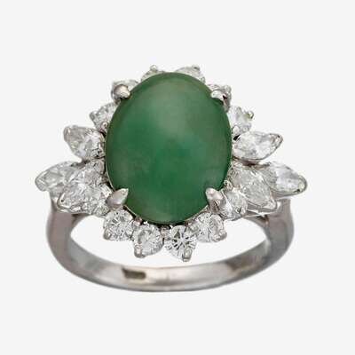 *A jadeite, diamond and eighteen karat white gold ring