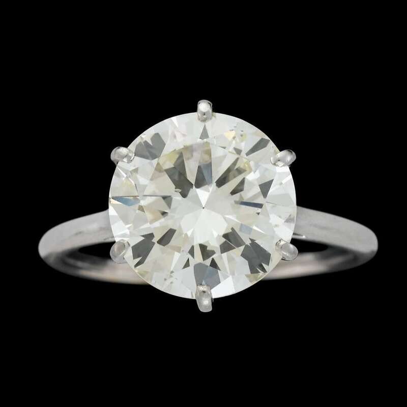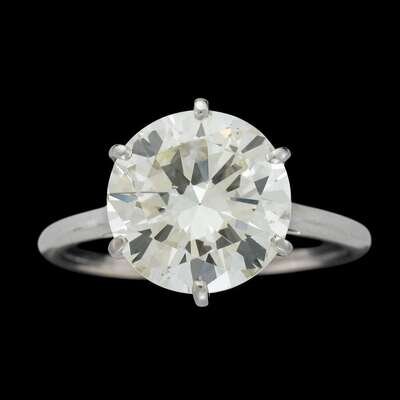 centering a round brilliant-cut diamond weighing: 5.10 carats.