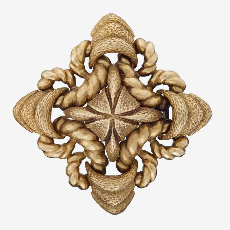 dimensional quatrefoil motif with textured and hammered gold; signed Webb.