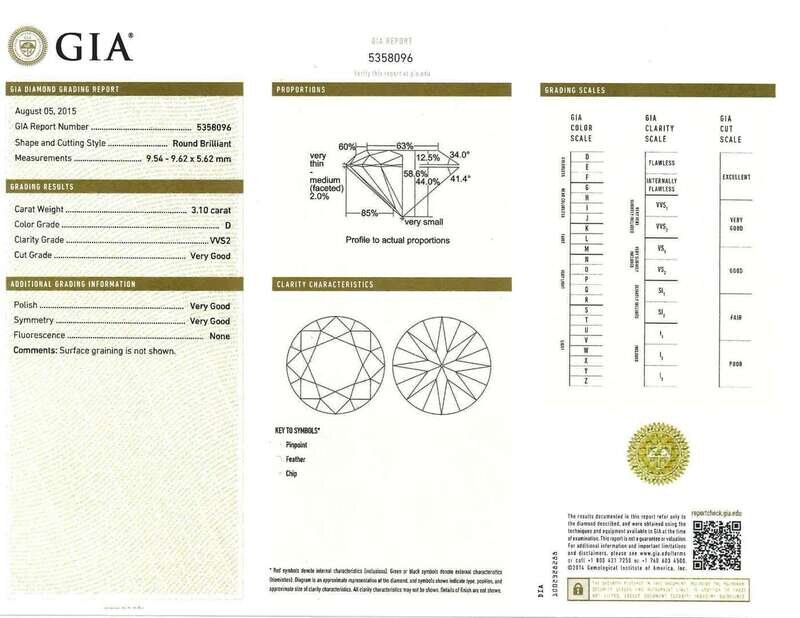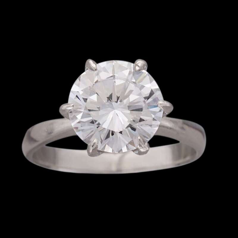centering a round brilliant-cut diamond weighing: 3.10 carats.