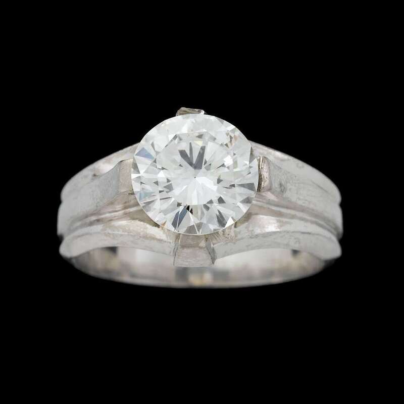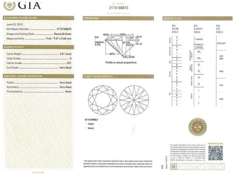centering a round brilliant-cut diamond weighing: 3.01 carats.