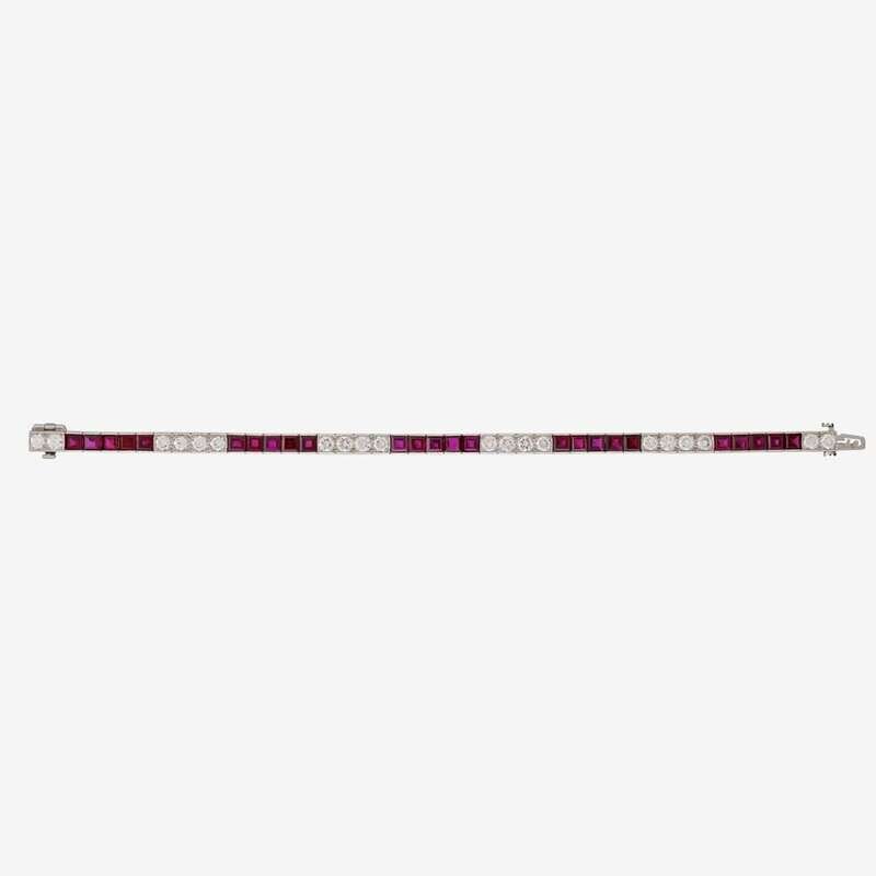 *A diamond, ruby and platinum line bracelet