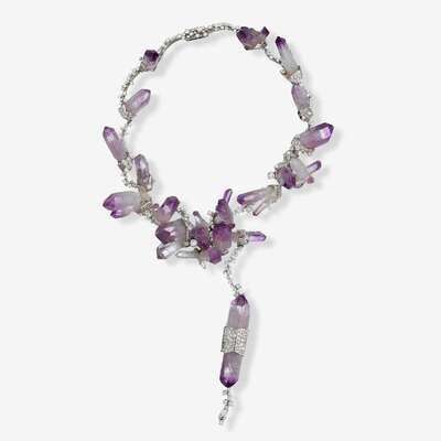 An amethyst, diamond and platinum necklace, Jean Vendome