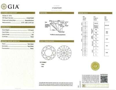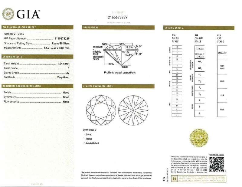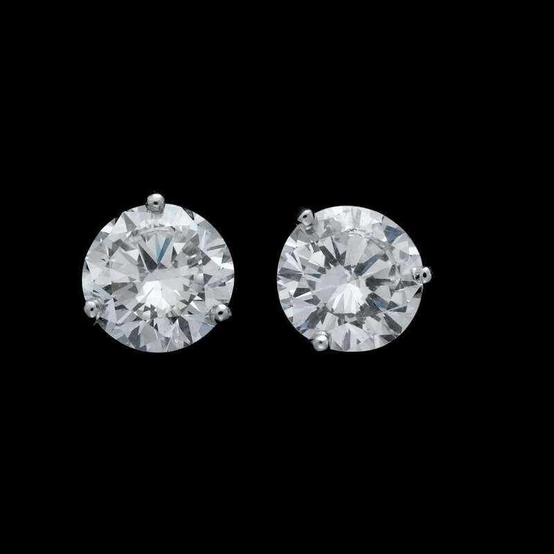 set with round brilliant-cut diamonds weighing: 1.04 and 1.13 carats respectively.