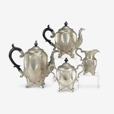 Four piece pewter partial tea service leonard, reed & barton, taunton, ma, 1837-1840