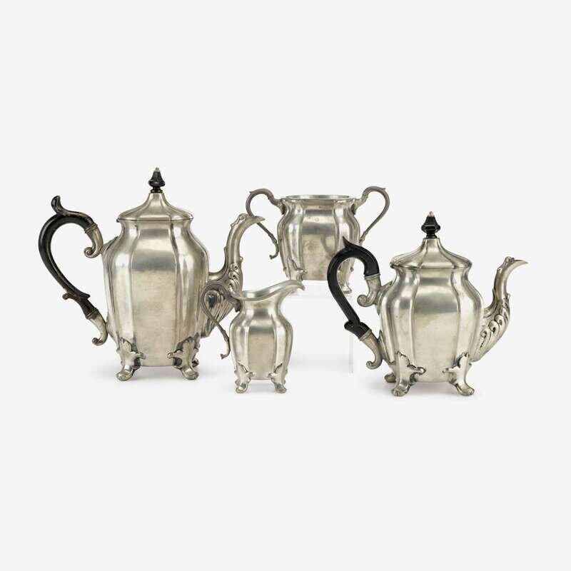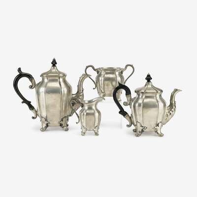 Four piece Britannia metal partial tea service reed & barton, taunton, ma, 1840