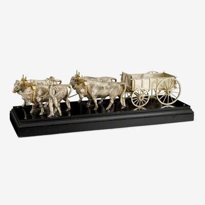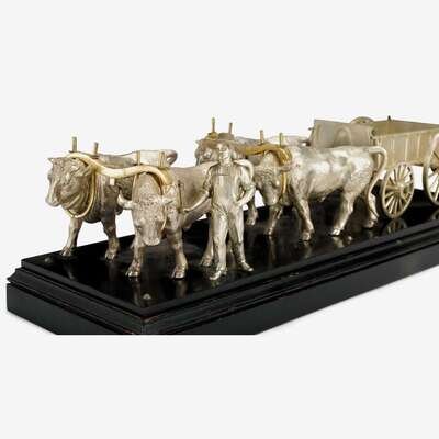 Fine silver-plated model of an oxen cart with farmer attributed to henry reed (1810-1901), reed & barton, taunton, ma, 187