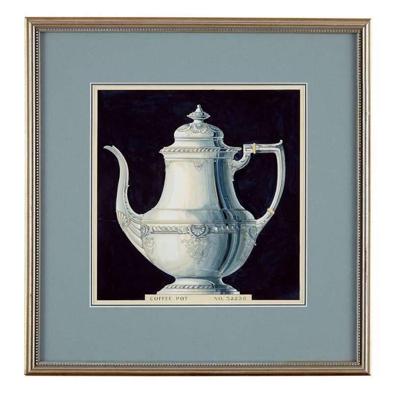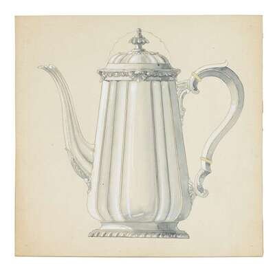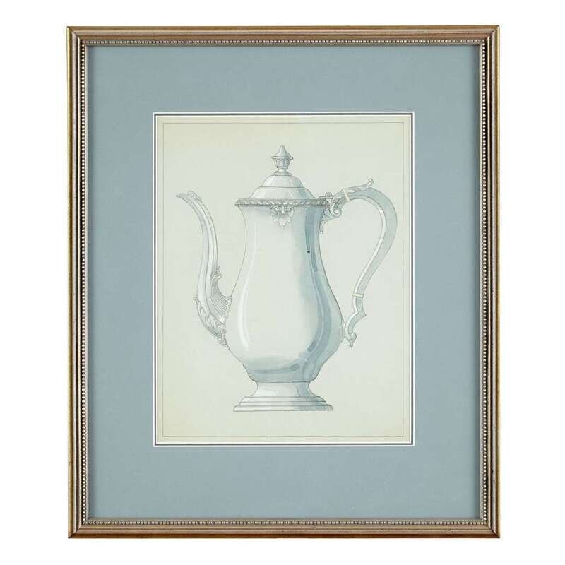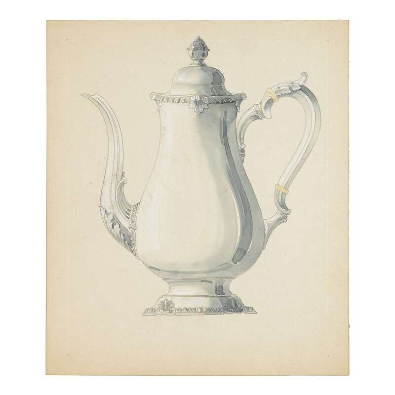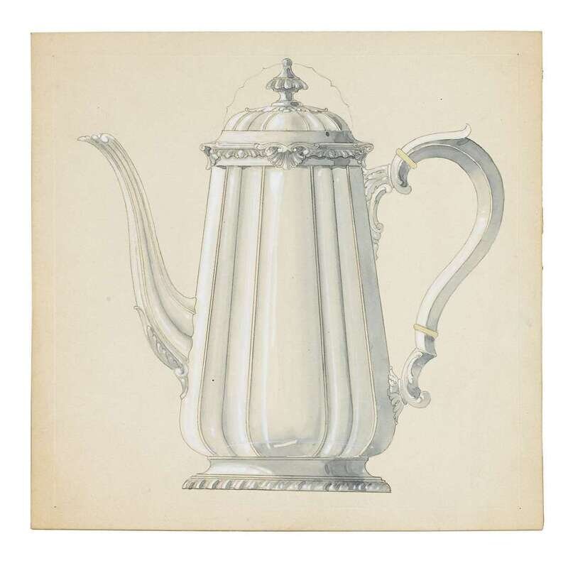 Four original Reed & Barton design drawings of tea and coffee pots