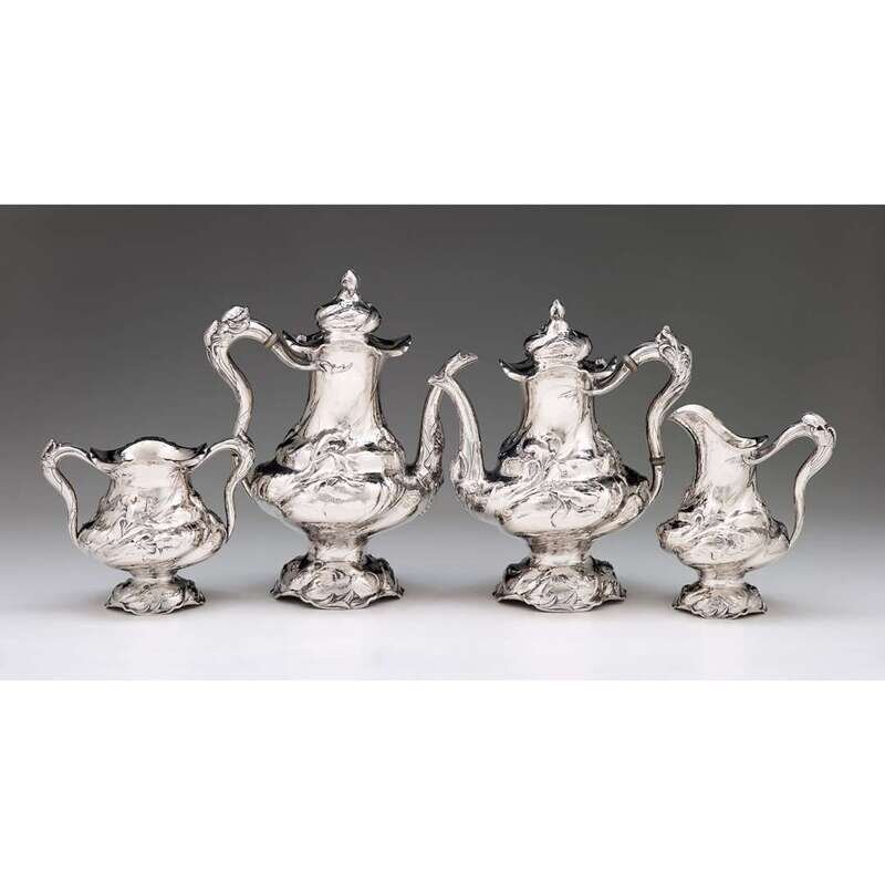 Fine and rare four piece .950 standard silver 'Art Nouveau' tea and coffee service reed & barton, taunton, ma, circa 1928