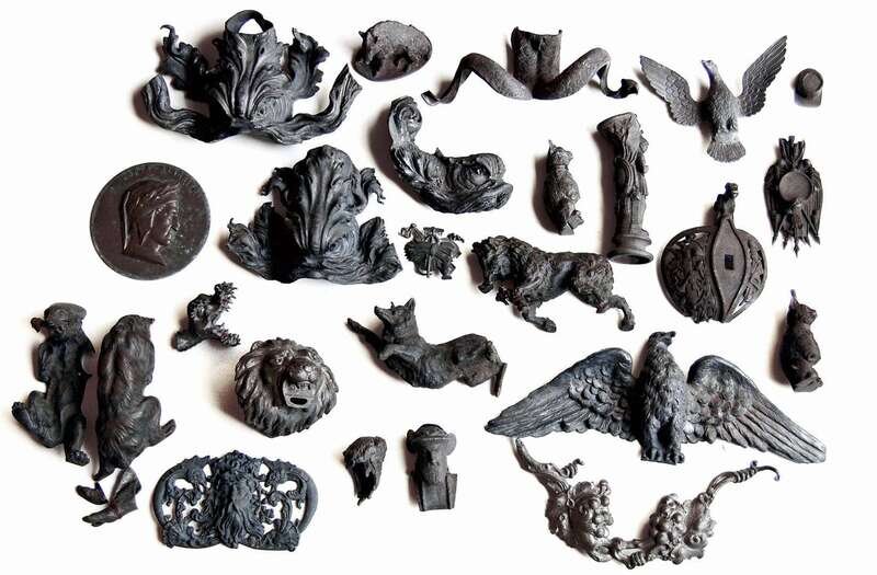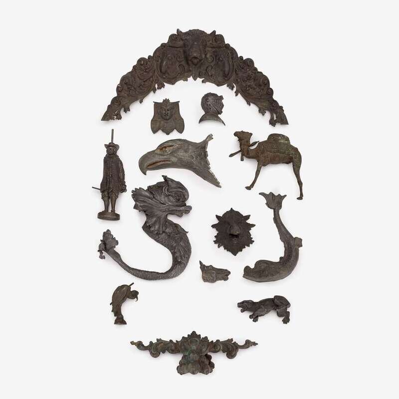 Including dolphin-form mounts, birds, animals, figures, military accoutrements, medals, and other ornamental elements.
