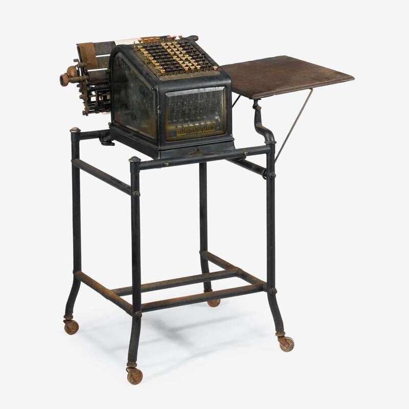 Burrough's Class 1, Model 9 beveled glass-paneled adding machine used at reed & barton, taunton, ma