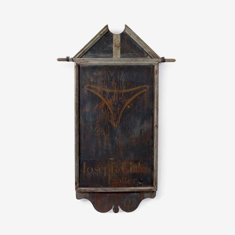 Painted pine trade sign for "Joseph Little Hatter 1762" probably newburyport, ma, 18th century