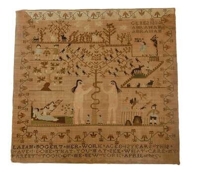 Needlework sampler lanah bogert, new york, early 19th century