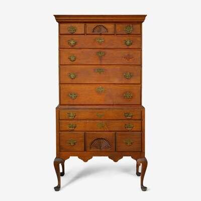 Queen Anne maple flat-top high chest dunlap school, new hampshire, 1760-1790