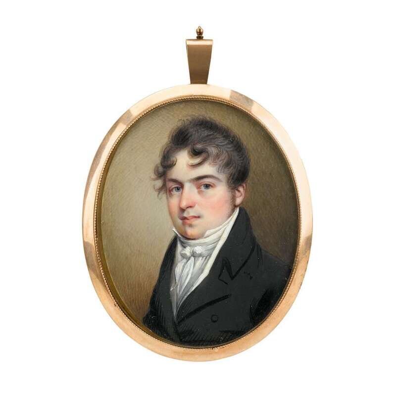 Elkanah Tisdale (1791-after 1834) miniature portrait of caleb halstead of connecticut, circa 1820