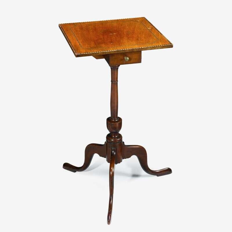 Federal inlaid mahogany single-drawer candlestand new england, circa 1790