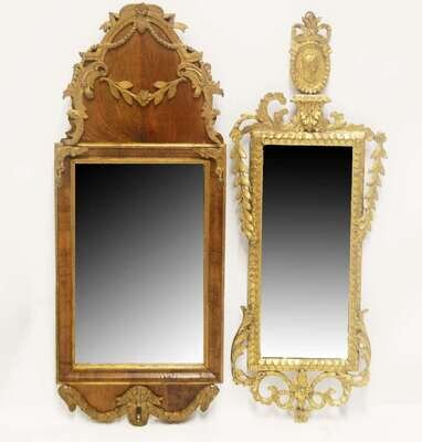 Two Continental diminutive looking glasses late 18th/early 19th century
