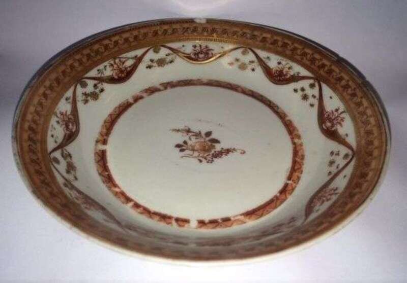 Pair of Chinese Export porcelain cups and a saucer for the American market circa 1800