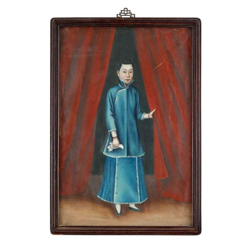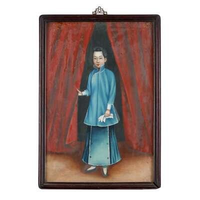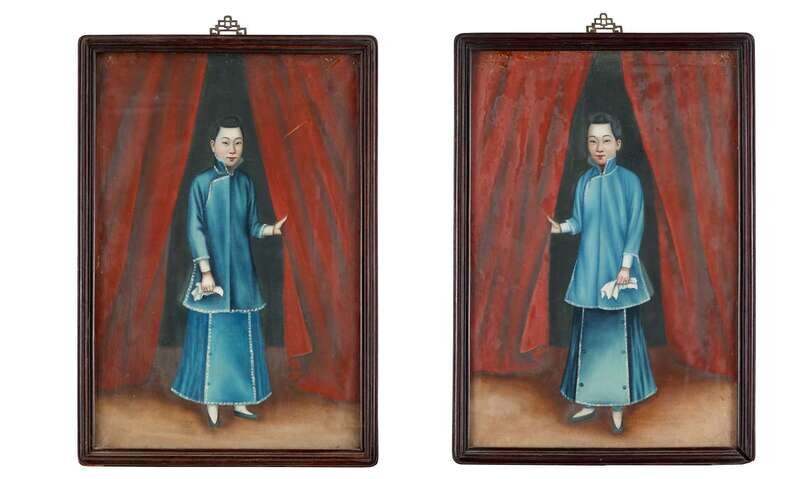 Pair of China Trade Paintings 19th century two courtiers