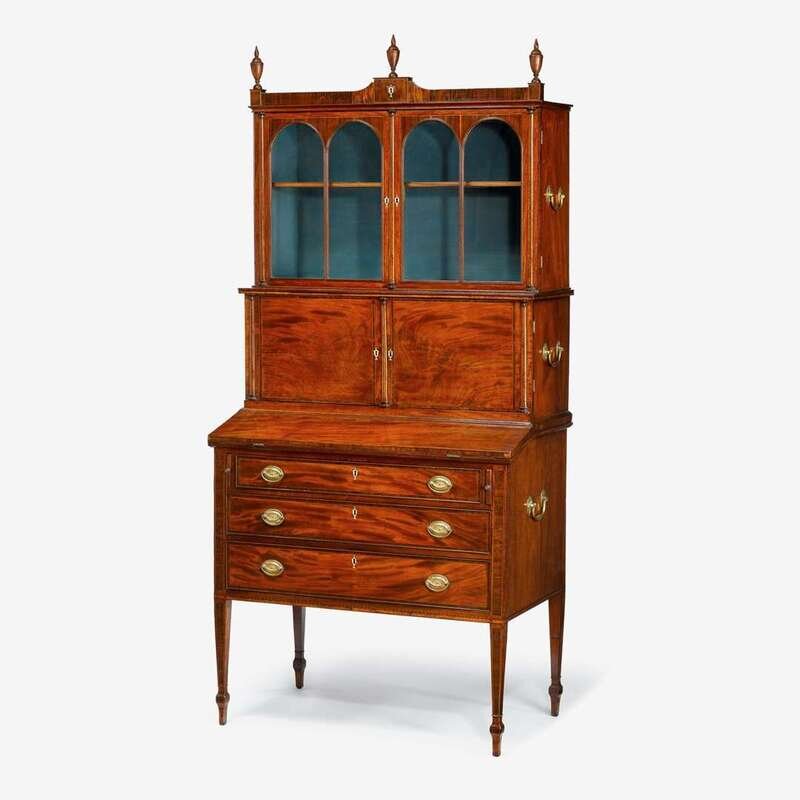 Federal inlaid mahogany lady's secretary bookcase attributed to john and thomas seymour, boston, ma, 1805-1808