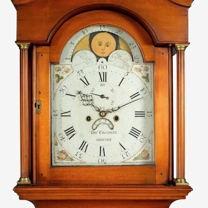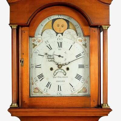 g (1746-1836), hopkinton, nh The dial signed, "Tim Chandler Concord," the case retains printed, paper label to backboard, "Made by David Young, Joiner, Hopkinton, Newhampshire."