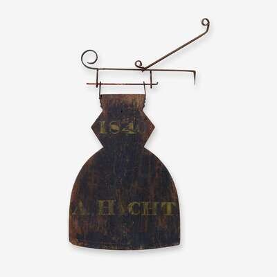 Painted double sided wooden trade sign for "A Hicht 1840" 19th century