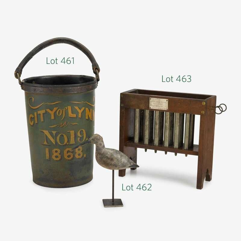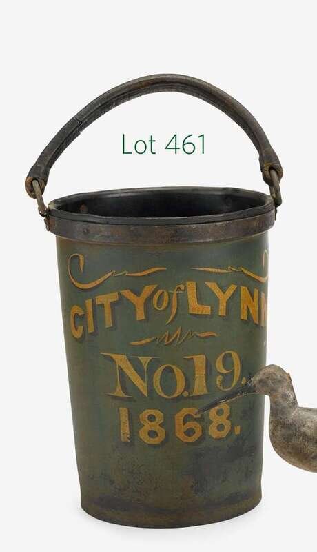 Painted rubber "City of Lynn No. 19 1868" firebucket n. hayward & co. manufacturers, colchester, ct