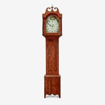 Federal grain-painted pine tall case clock works probably by silas hoadley for j.b. & r. twiss, montreal, circ