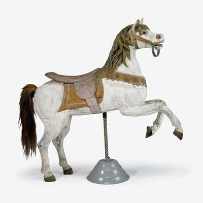 Carved and painted carousel figure of a prancer attributed to charles i.d. looff (active 1875-1918), brooklyn, ny, lat