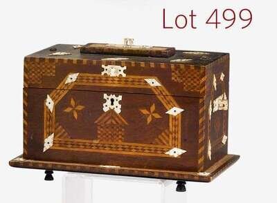 Inlaid and bone embellished mahogany valuables box late 19th century