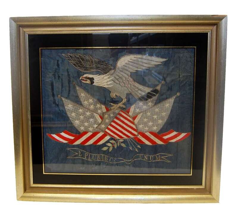 Embroidered silk panel, "E Pluribus Unum" late 19th century