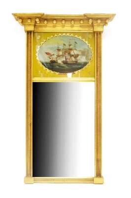 Classical giltwood and églomisé looking glass "constitution & guerriere," early 19th century